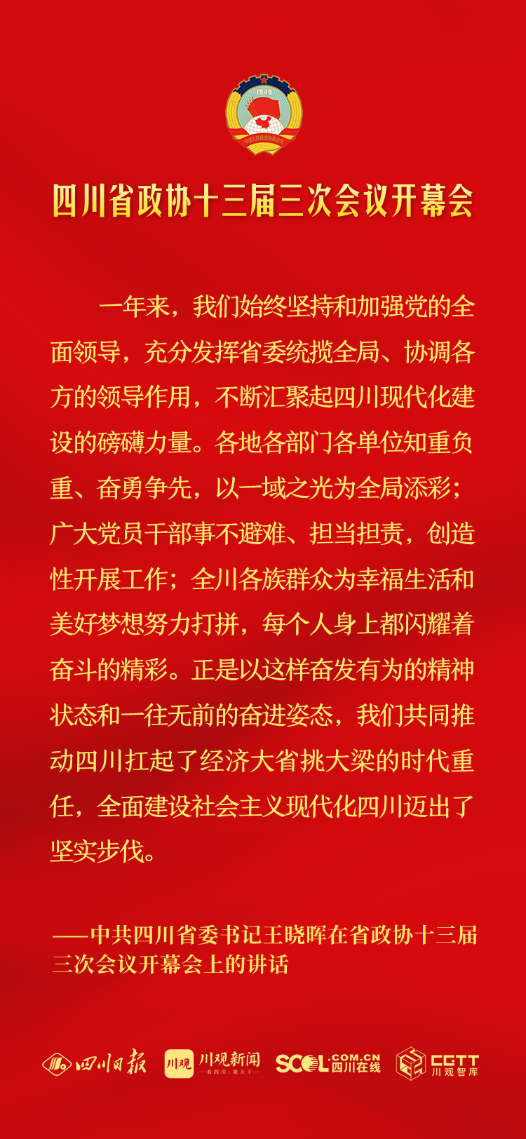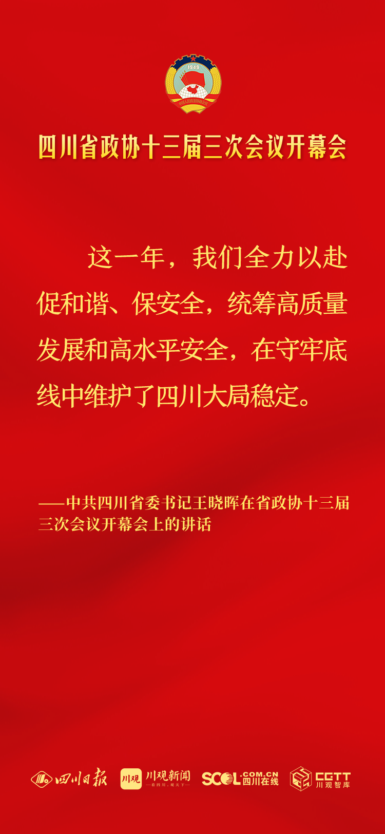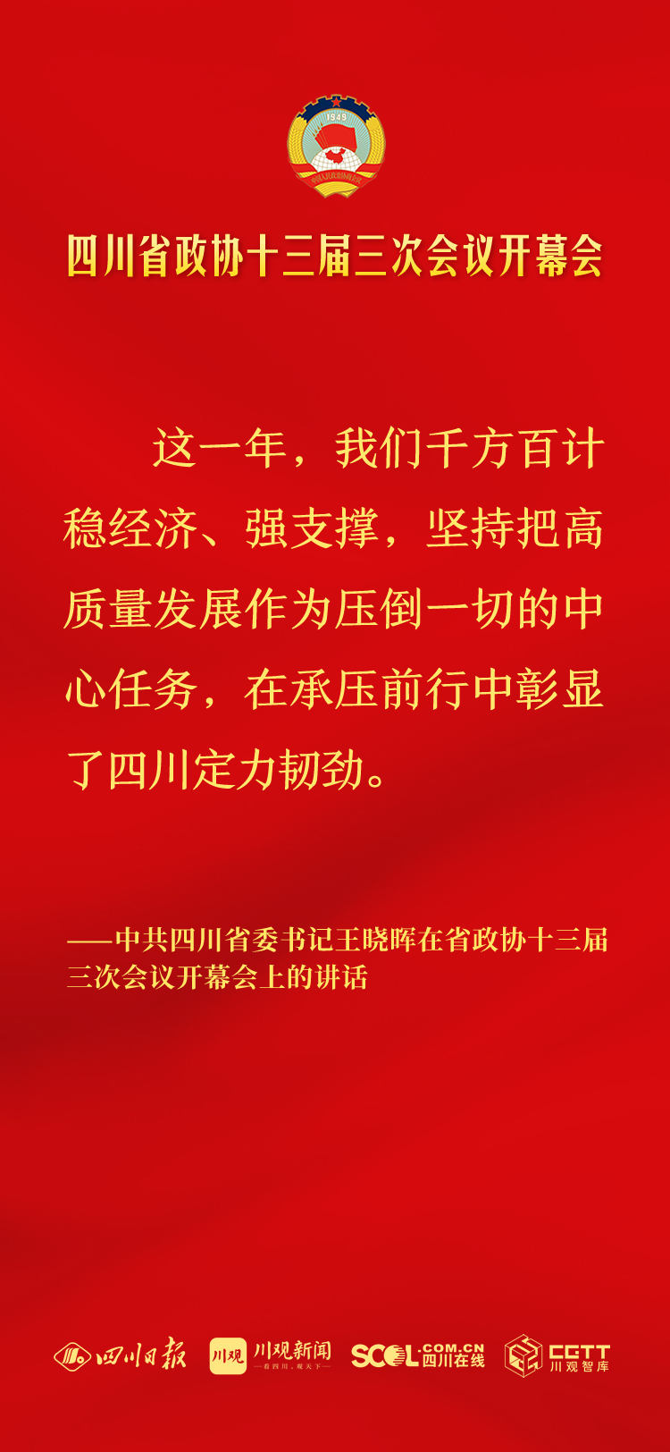 王晓晖指出,刚刚过去的2024年,是新中国成立75周年,是实现“十四五”规划目标任务的关键之年,也是四川发展承压负重、砥砺前行的一年!